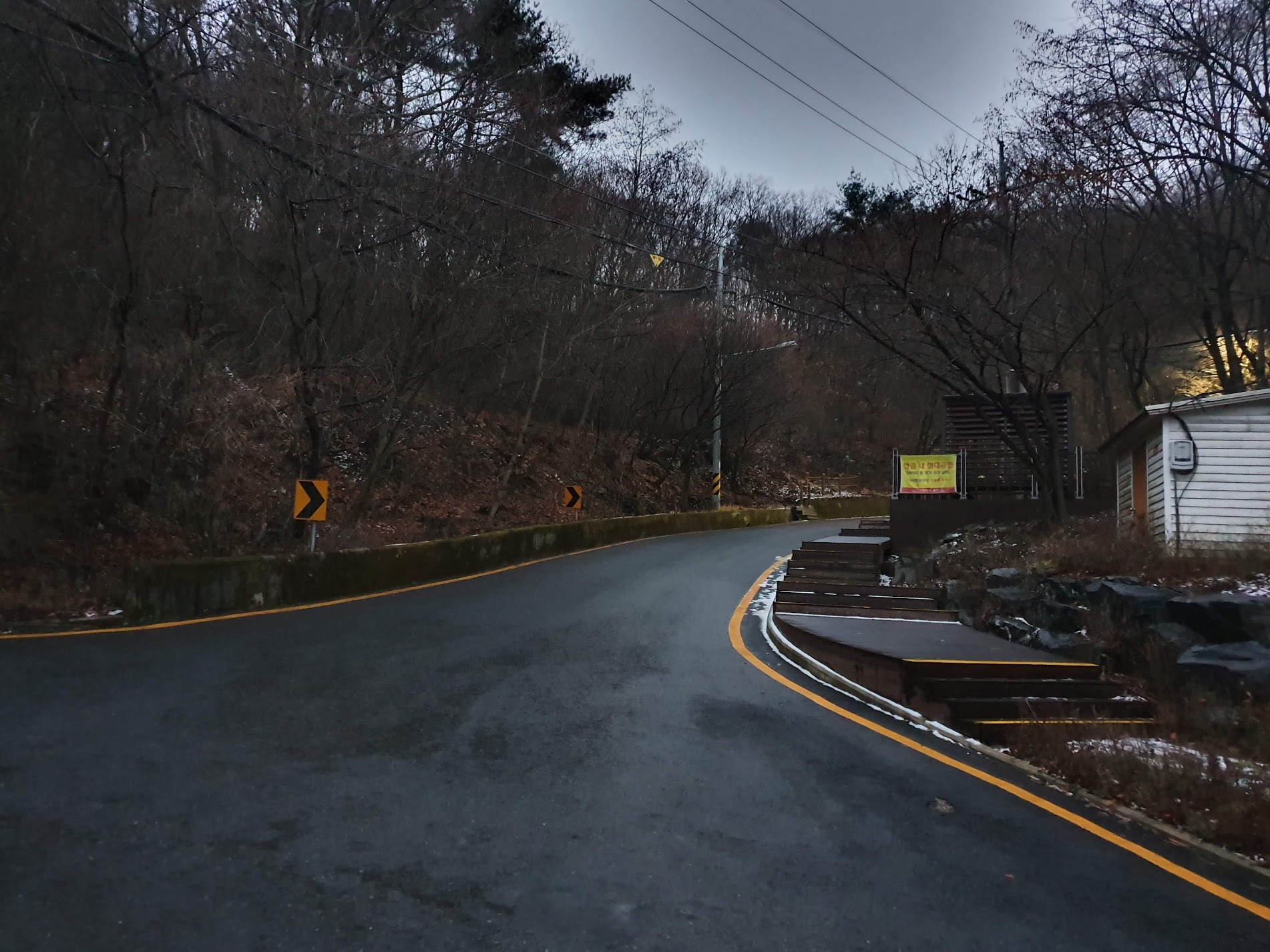 경사가 좀 있고, 꼬불꼬불하지만