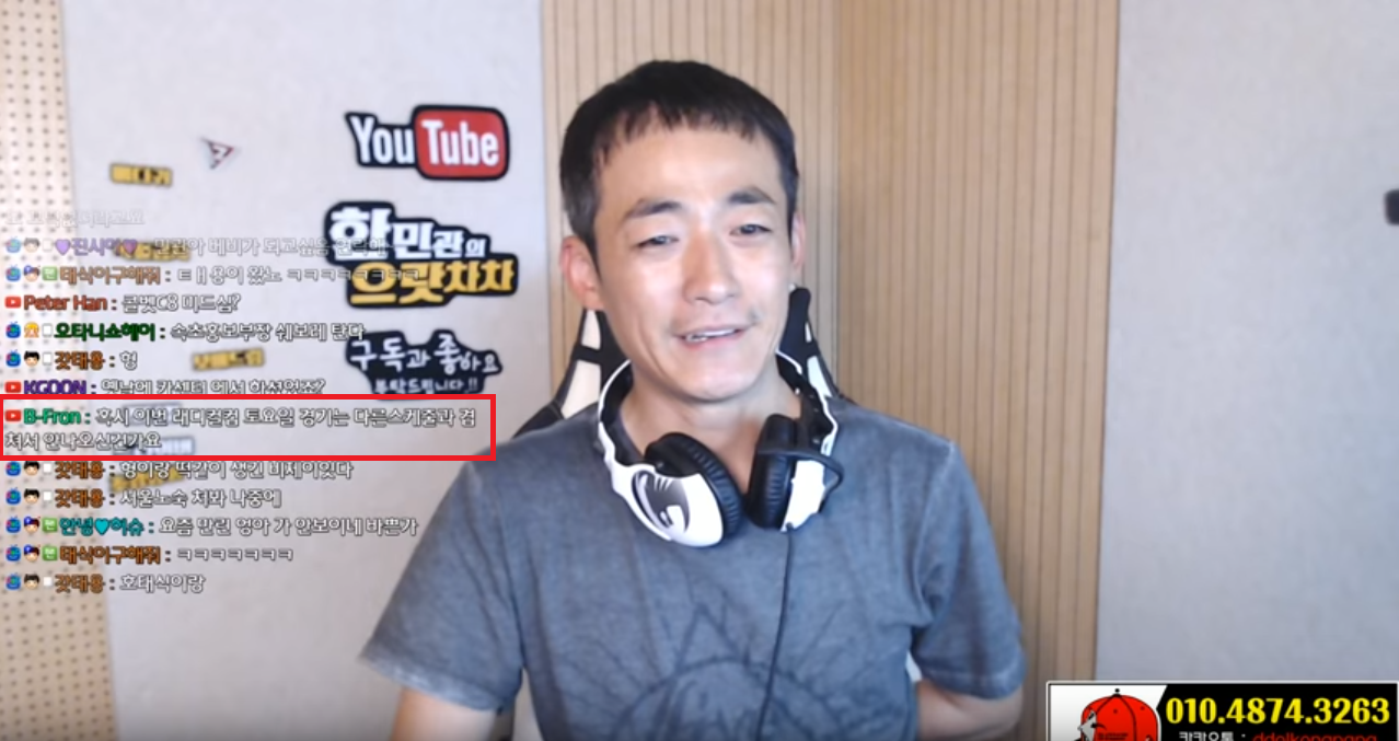 한민관 선수가 라이브를 진행하고 있길래