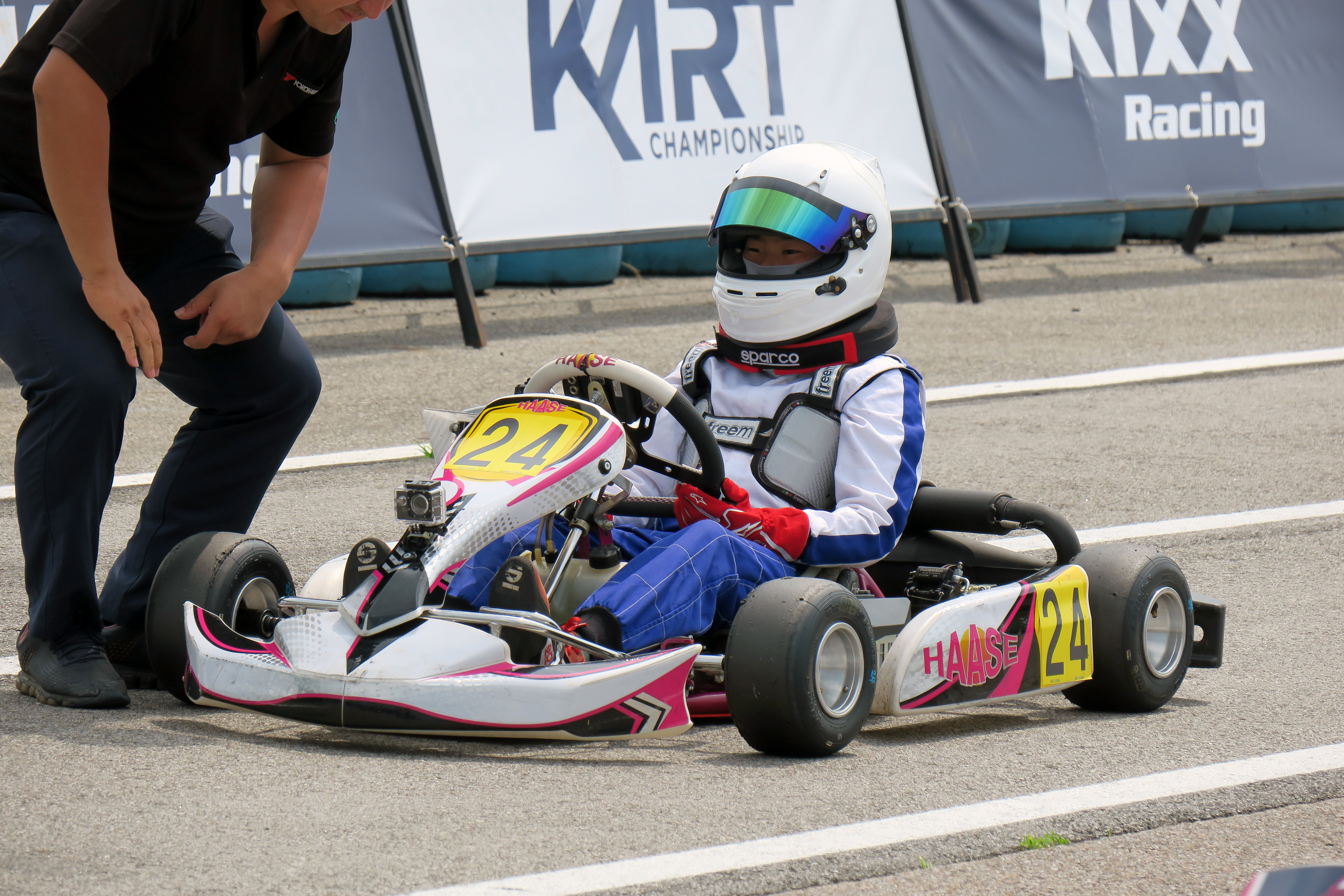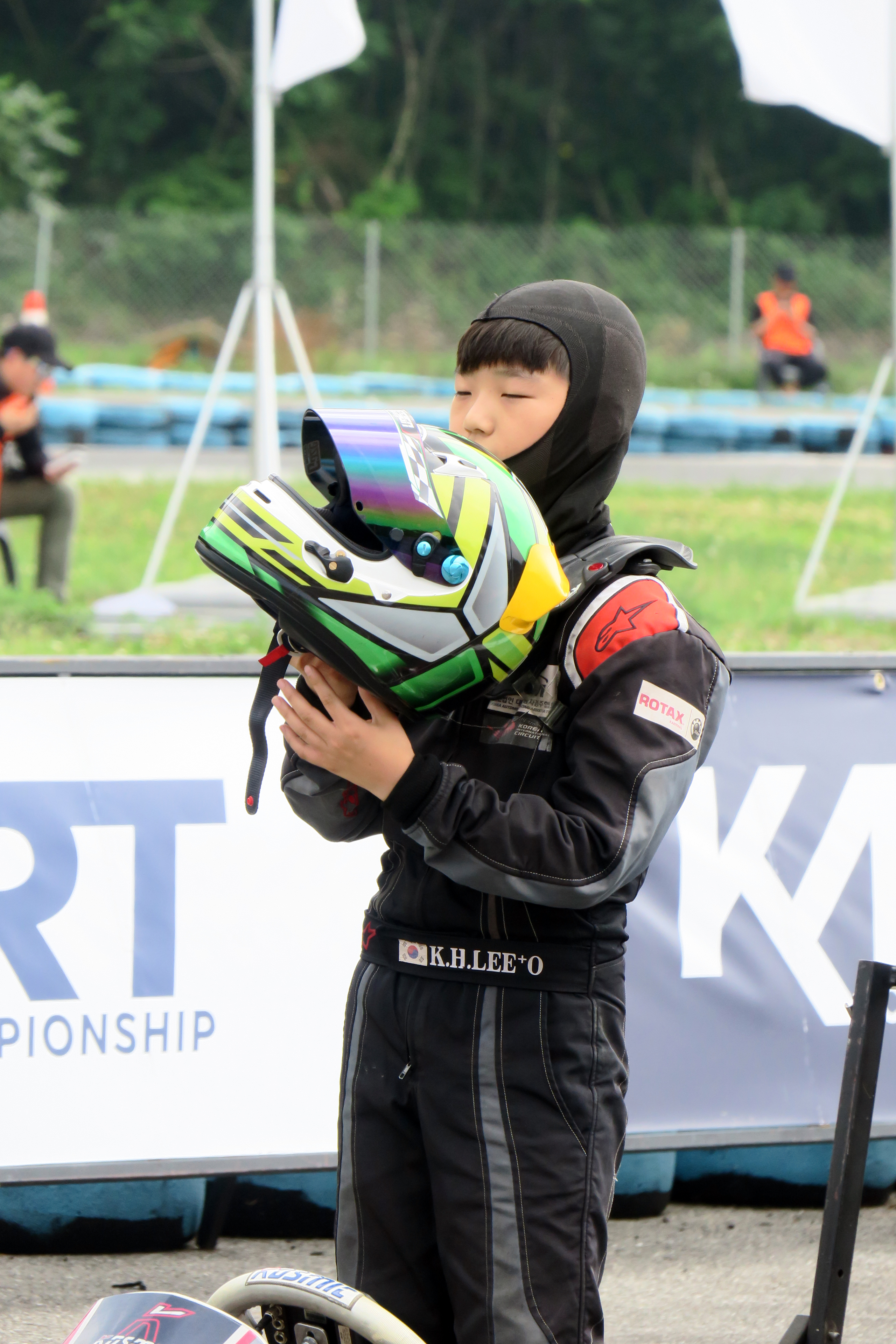 헬멧을 쓰고 카트에 앉는 순간